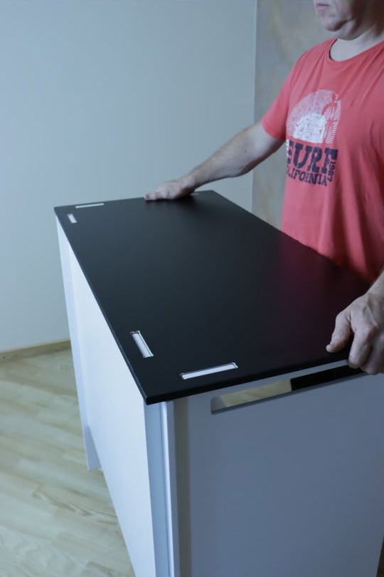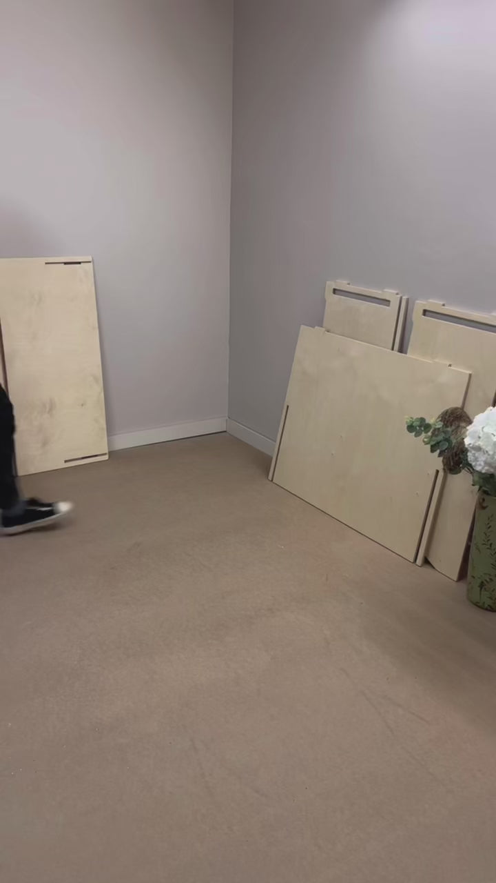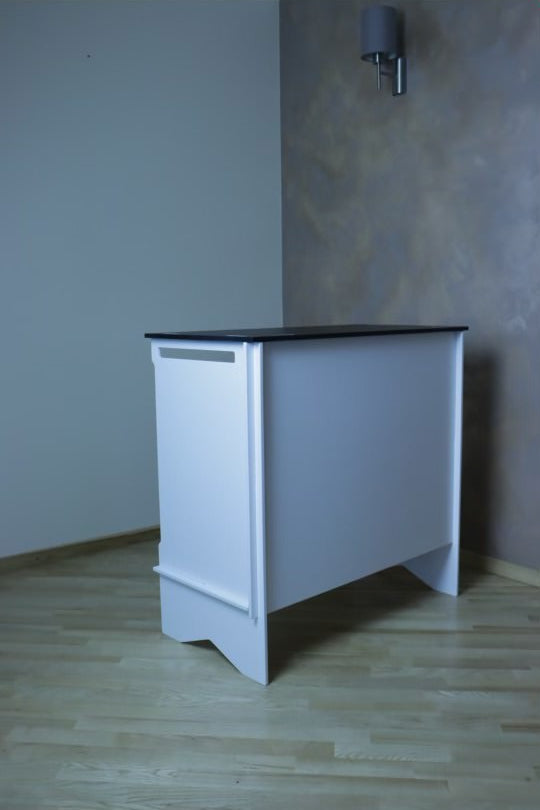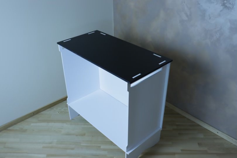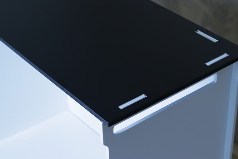 Le produit lui-même est fabriqué à partir de contreplaqué de bouleau de 12 mm (0,47 po) d'épaisseur. Pour la finition du dessus, nous avons un vernis mat transparent, pour garder la couleur d'origine du bois visible. Conçu pour de multiples usages et pour être transformé en paquet plat pour un déplacement plus facile.