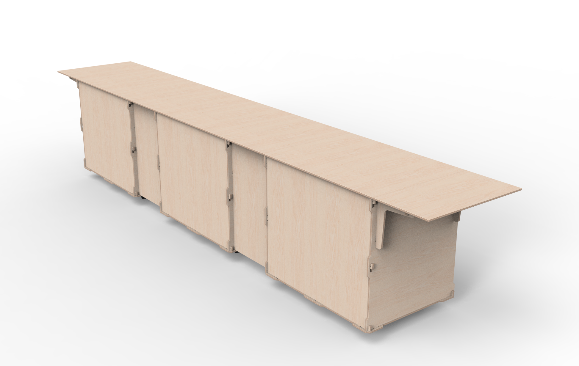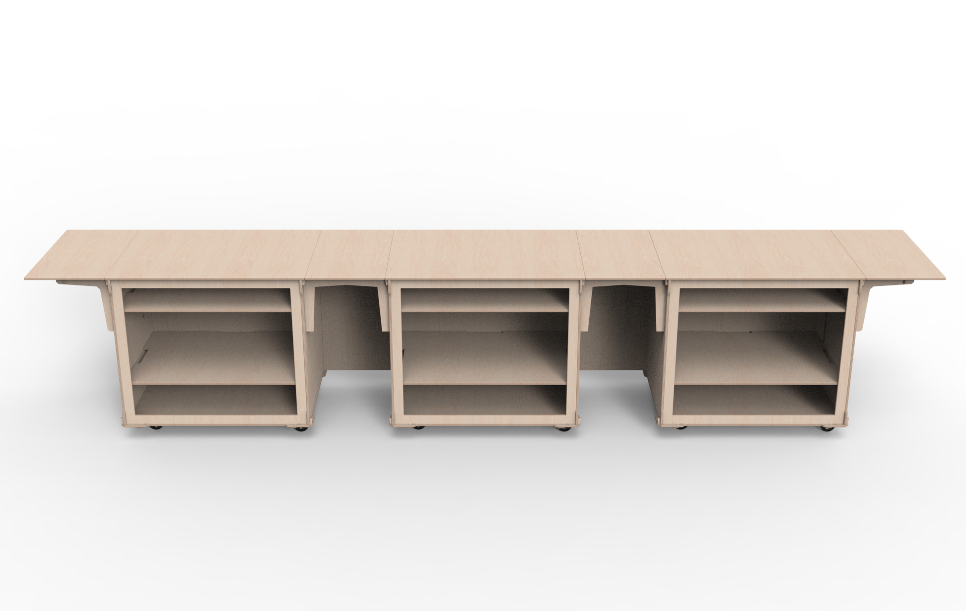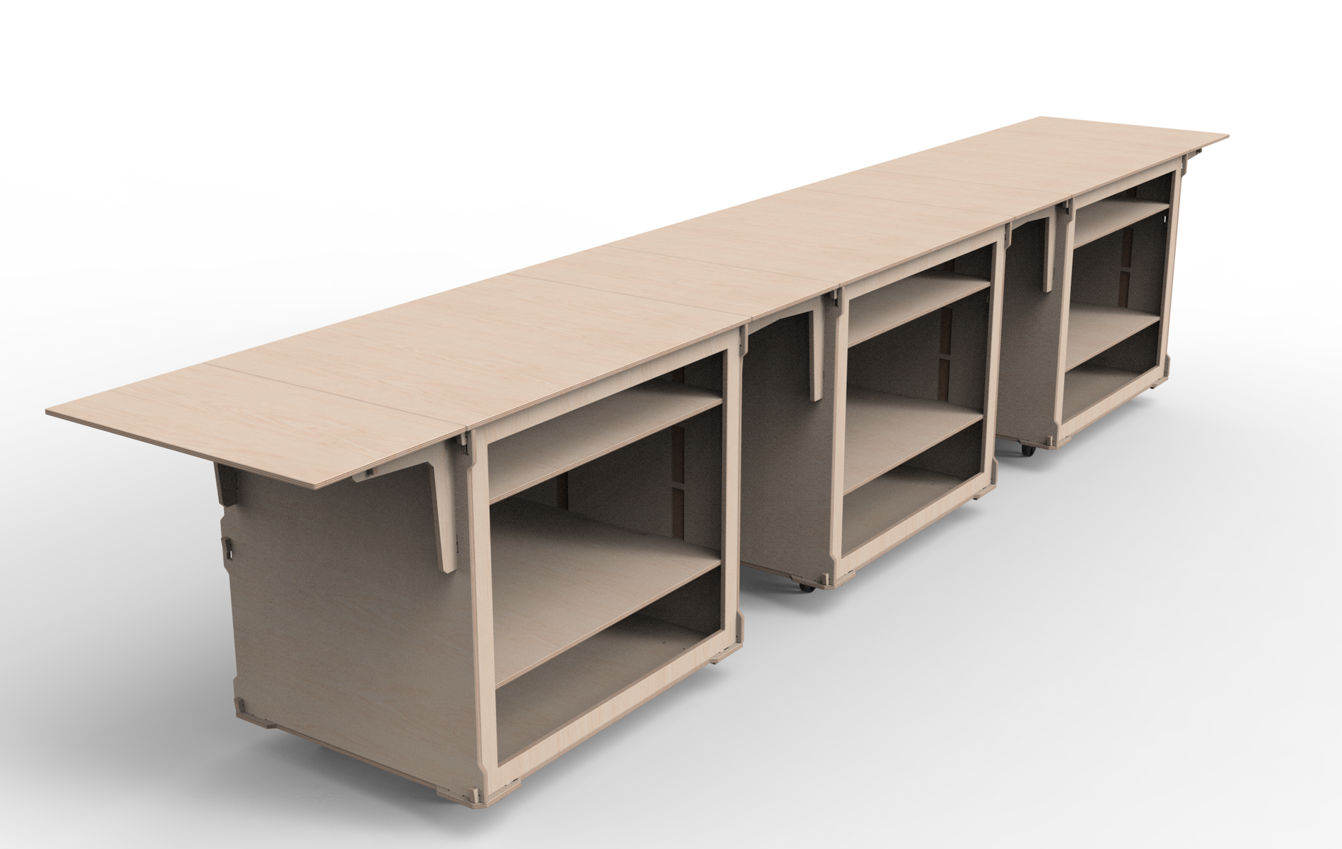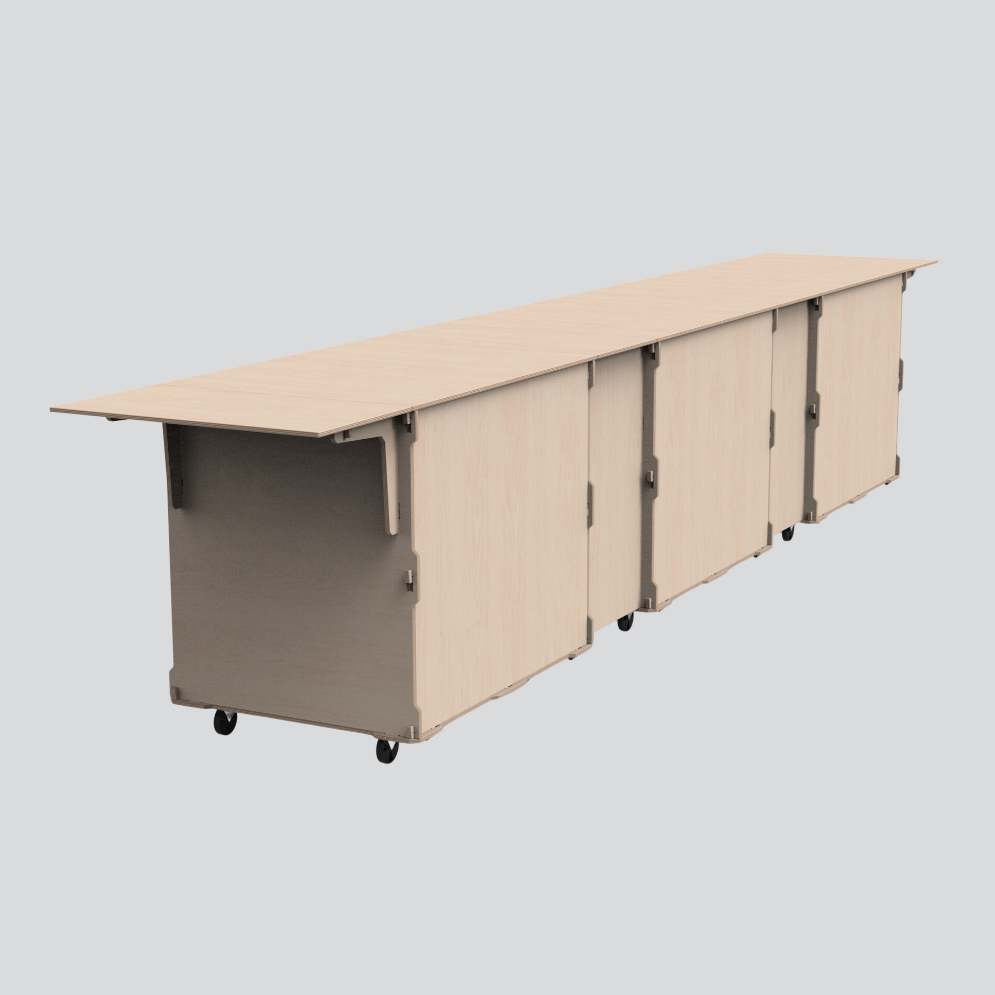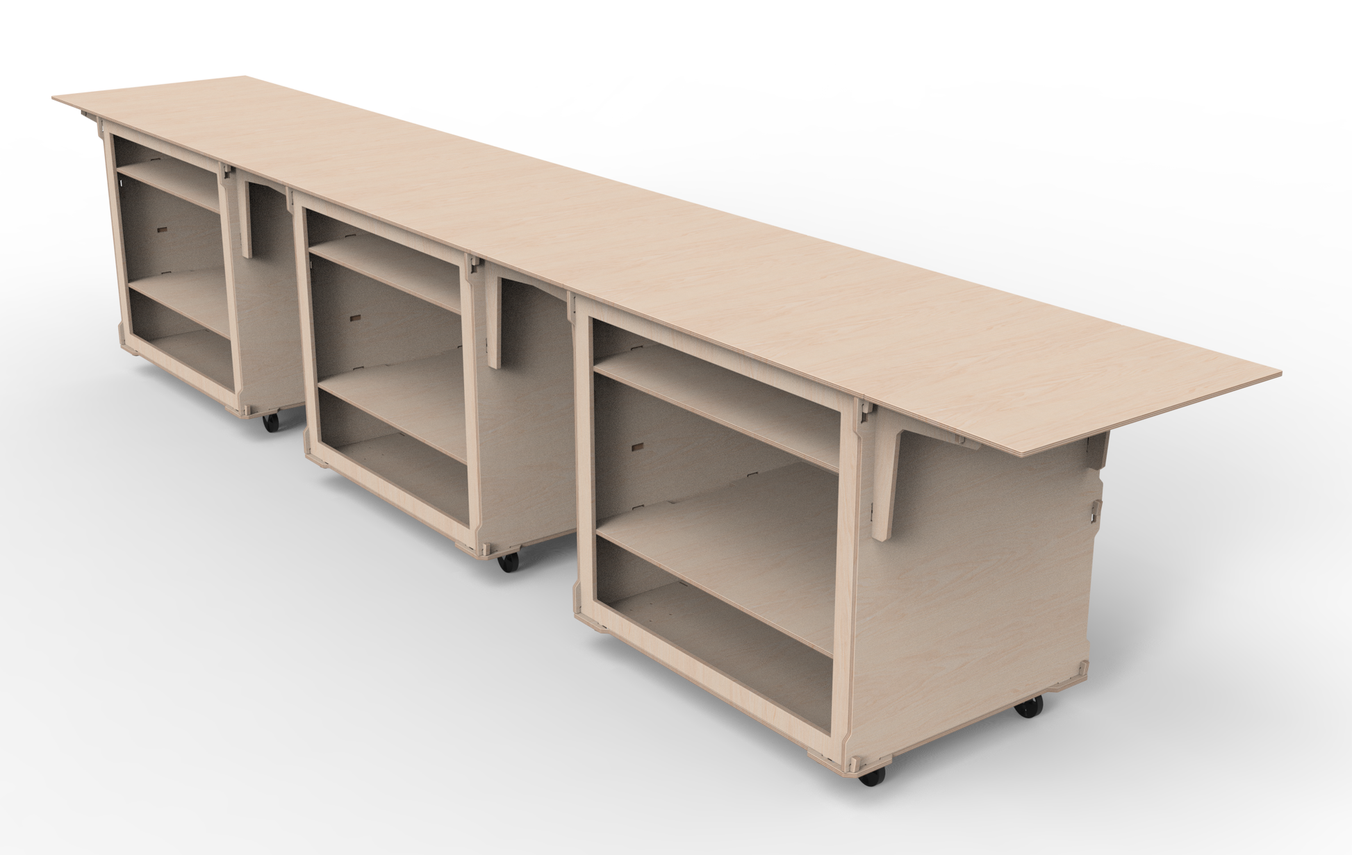 - Plan de travail étendu : connectez trois chariots pour former un long comptoir cohérent.