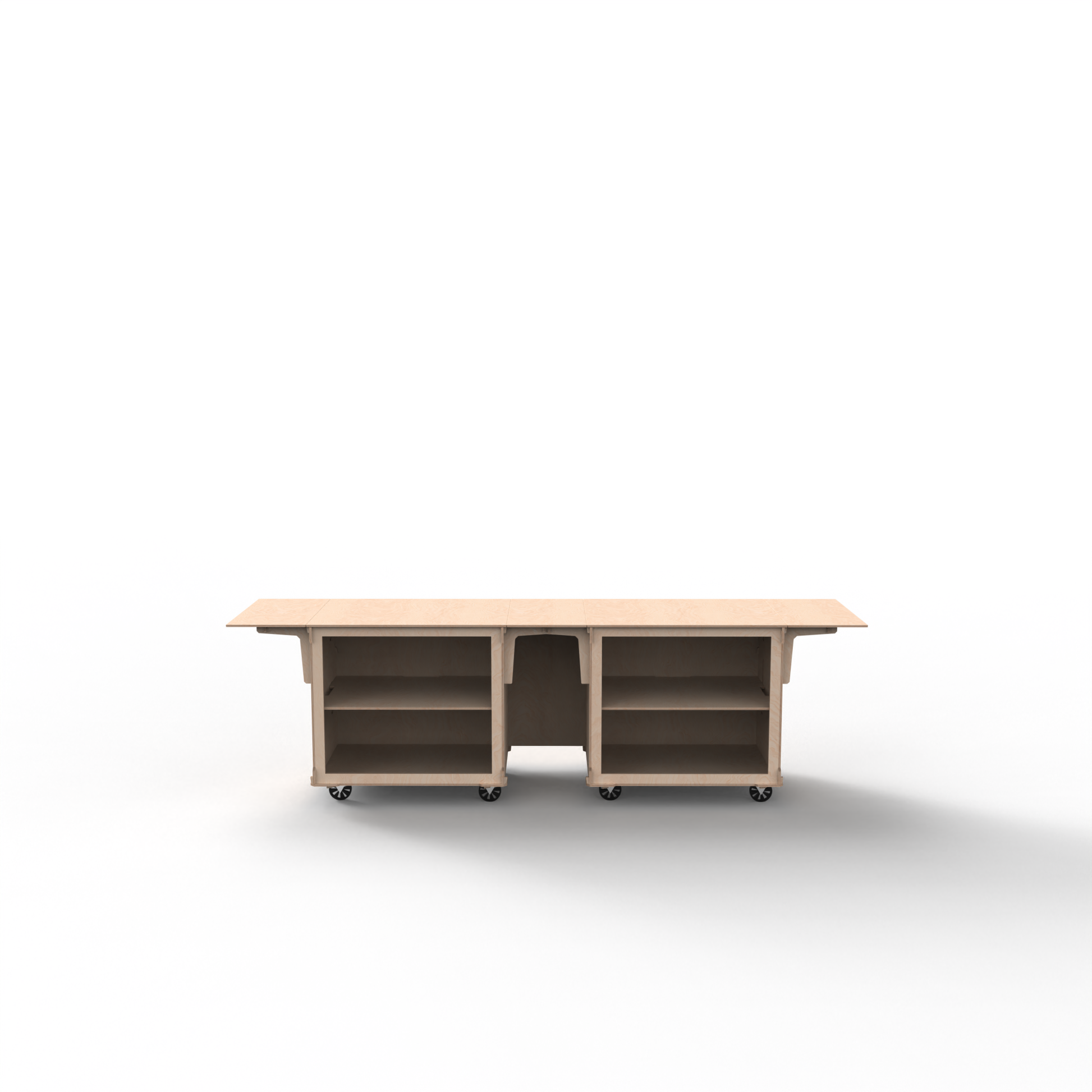 Create a clean, professional countertop in seconds. This straight-line setup links two full-size mobile carts with one straight connector, giving you a long, unified work surface that’s perfect against a wall, along an aisle, or as a front-facing service bar for coffee, sampling, or retail demos.